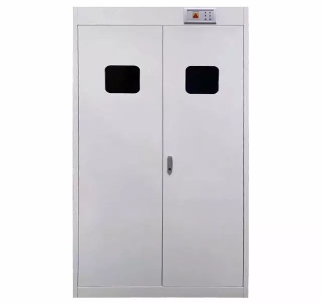 柜体顶部设有出风口,特别设计翻推式垫板方便气瓶推入使用,并有自动报警装置和自动排风系统。